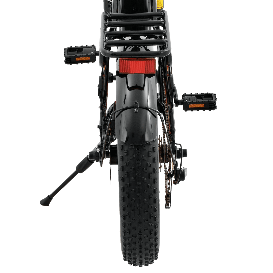 Велосипед идёт с задним приводом, что обеспечит стабильность на дороге. Колёса, диаметром 20 дюймов, обеспечат отличную проходимость, при езде по неровным дорогам. Также у него есть удобный механизм складывания, для качественной транспортировки и хранения, светодиодные фары, для безопасной езды в тёмное время суток, интегрированный дисплей, для отображения информации о скорости, пробеге и заряде батареи и регулируемый по высоте руль и удобное сидение.
