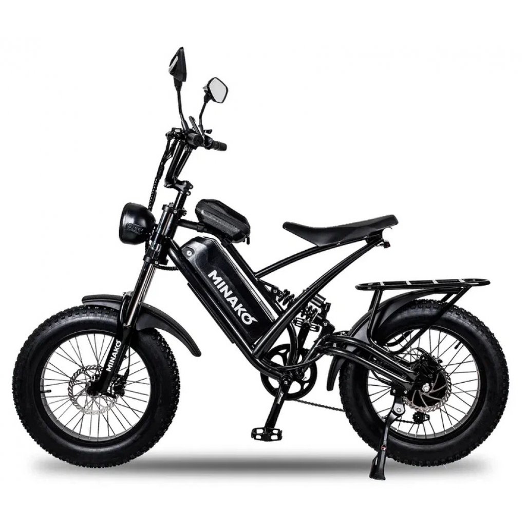 Электровелосипед Minako FOX - стильная новинка с мотором на 1000W, что позволит развивать до 55 км/ч. и преодолевать расстояние до 60 км. По ней можно с комфортом ездить по дорогам с неровностями и не только!