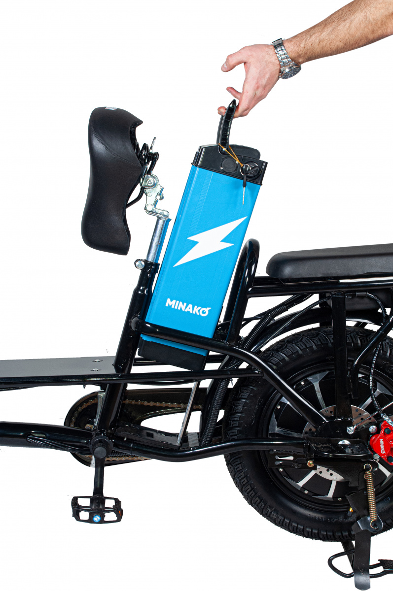Электровелосипед Minako Monster - мощная и комфортная модель с продуманными деталями. Она предназначена для езды по неровным поверхностям и не только!