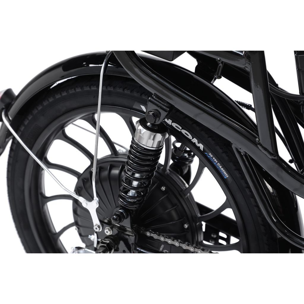 У него эксклюзивный дизайн, дисковые гидравлические задние тормоза, стальная рама, литые колёса, легкосъёмный АКБ, также в комплекте идёт дополнительное сидение, со спинкой.